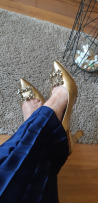 Alege să celebrezi fiecare moment special din viața ta pășind cu încredere într-o pereche unică de pantofi cu toc. Modelul nostru Selma are un design simplu, pus în valoare de accesoriul geometric tip cristale și de finisajul auriu al pielii naturale. Au un toc mediu, lat, care alături de o baretă fină crează un model elegant în care vei arată excepțional și te vei simți extrem de confortabil.